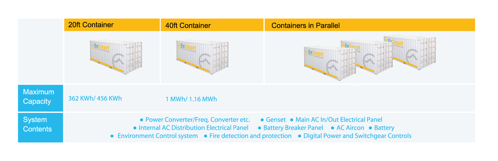 The containerised ESS system is available with 400kW, 500kW, 600kW, 1000kW capacities by using 20GP or 40HQ containers. Fully bunded ISO Container is designed with personnel and maintenance access doors and has air conditioned seperate converter and battery compartments.