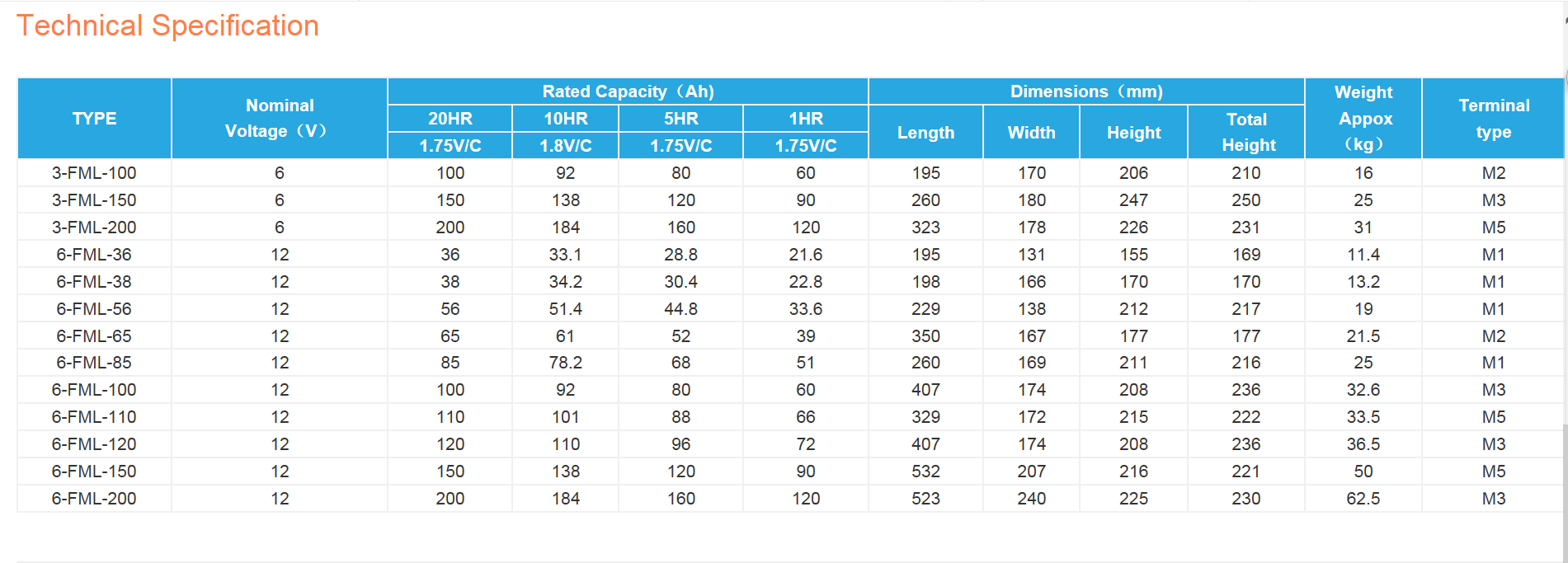 ● Capacity: 36-200Ah