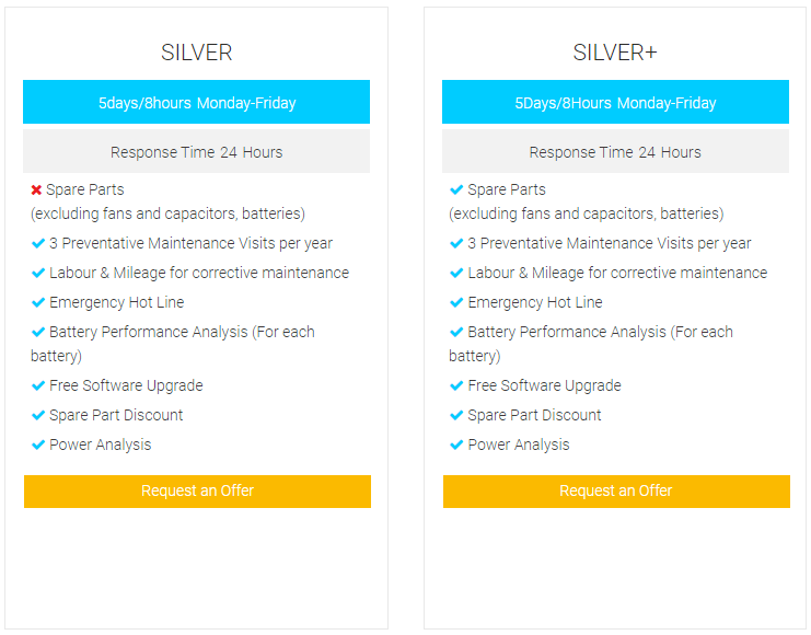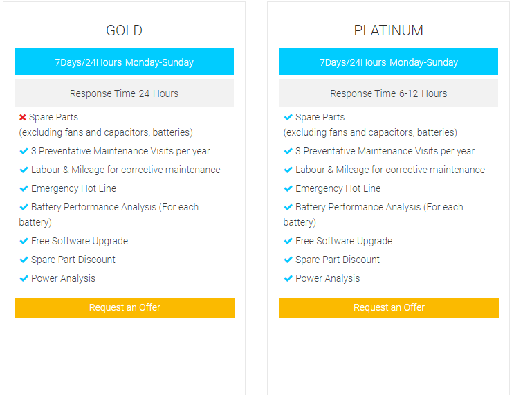 Preventative maintenance allows you to prevent any failure and extend your UPS System’s service life through on-going service support and fast response to emergency and to have a better MTBF (Mean Time Between Failures) of your UPS installation. During warranty period or out of warranty with EnSmart Power's tailored maintenance packages you can guarantee the peace of mind by ensuring optimum performance and safety of the UPS.